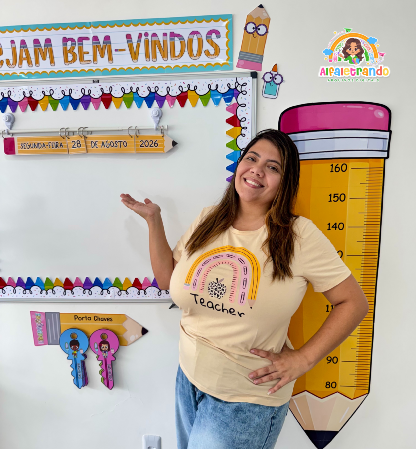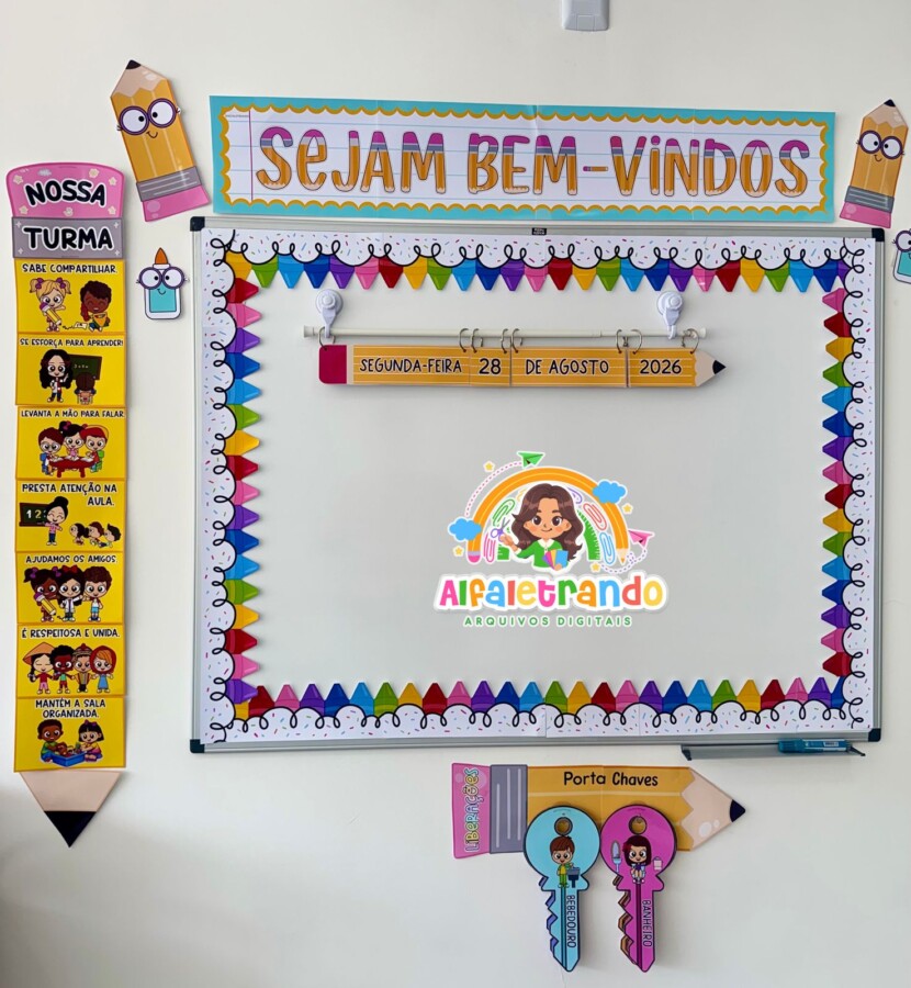 Um recurso perfeito para decorar o topo do quadro, mural ou porta da sala, trazendo acolhimento e deixando o ambiente muito mais convidativo já no primeiro dia de aula.