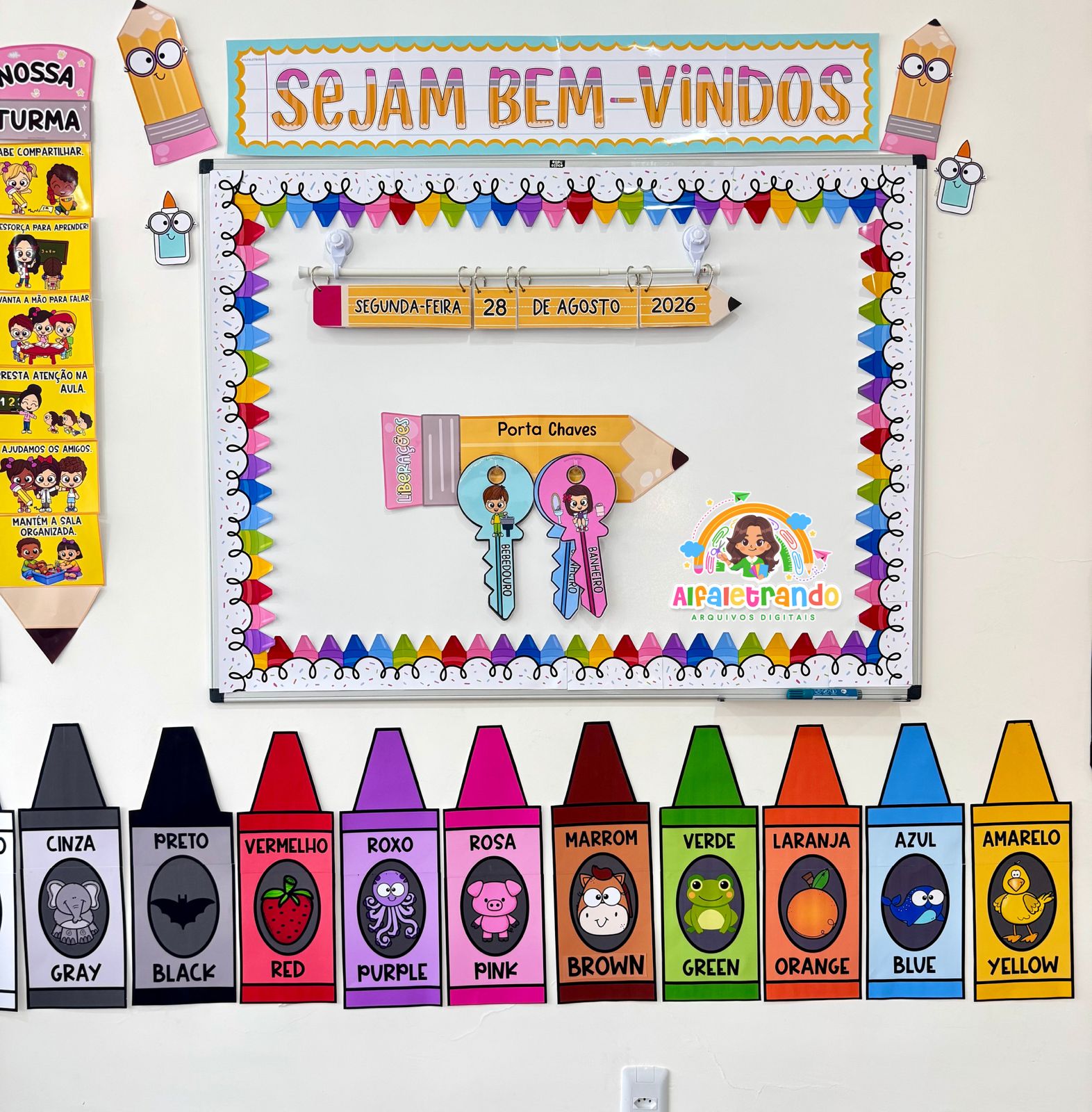 Deixe sua sala ainda mais lúdica e organizada com o Kit Giz de Cera das Cores Bilíngue!