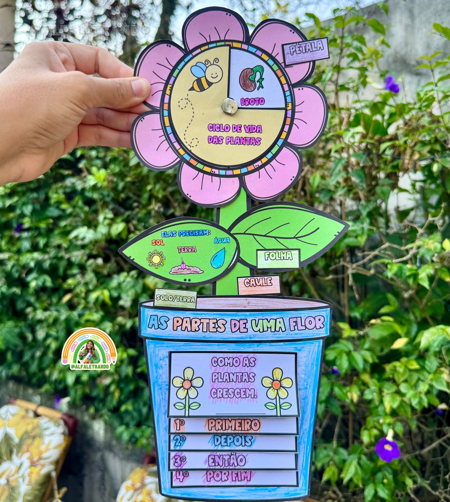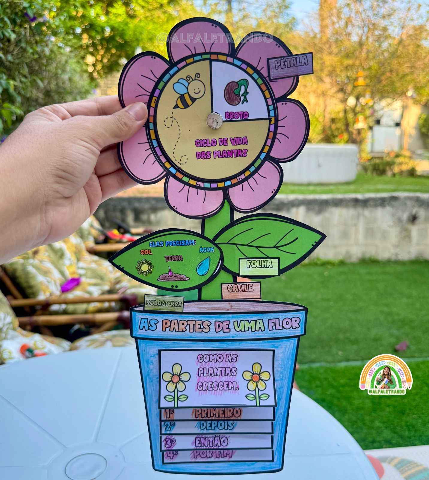🌹 Uma linda atividade interativa para montar, pintar, colar e escrever o ciclo das flores e as partes delas. 🌸