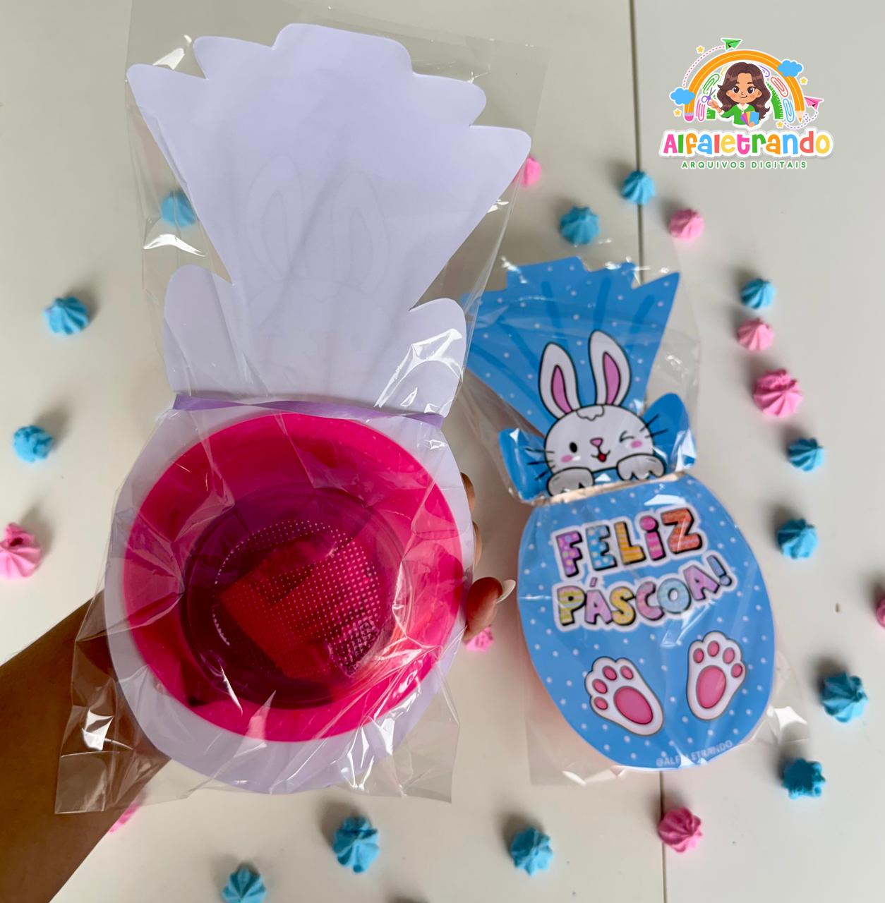 A lembrancinha possui versão para meninos e para meninas e só precisa de folha 170 gramatura e pratos fundos de 7,5 cm (o menor) que será recheado com doces para presentear os pequenos na Páscoa. 🐰🫶🍫