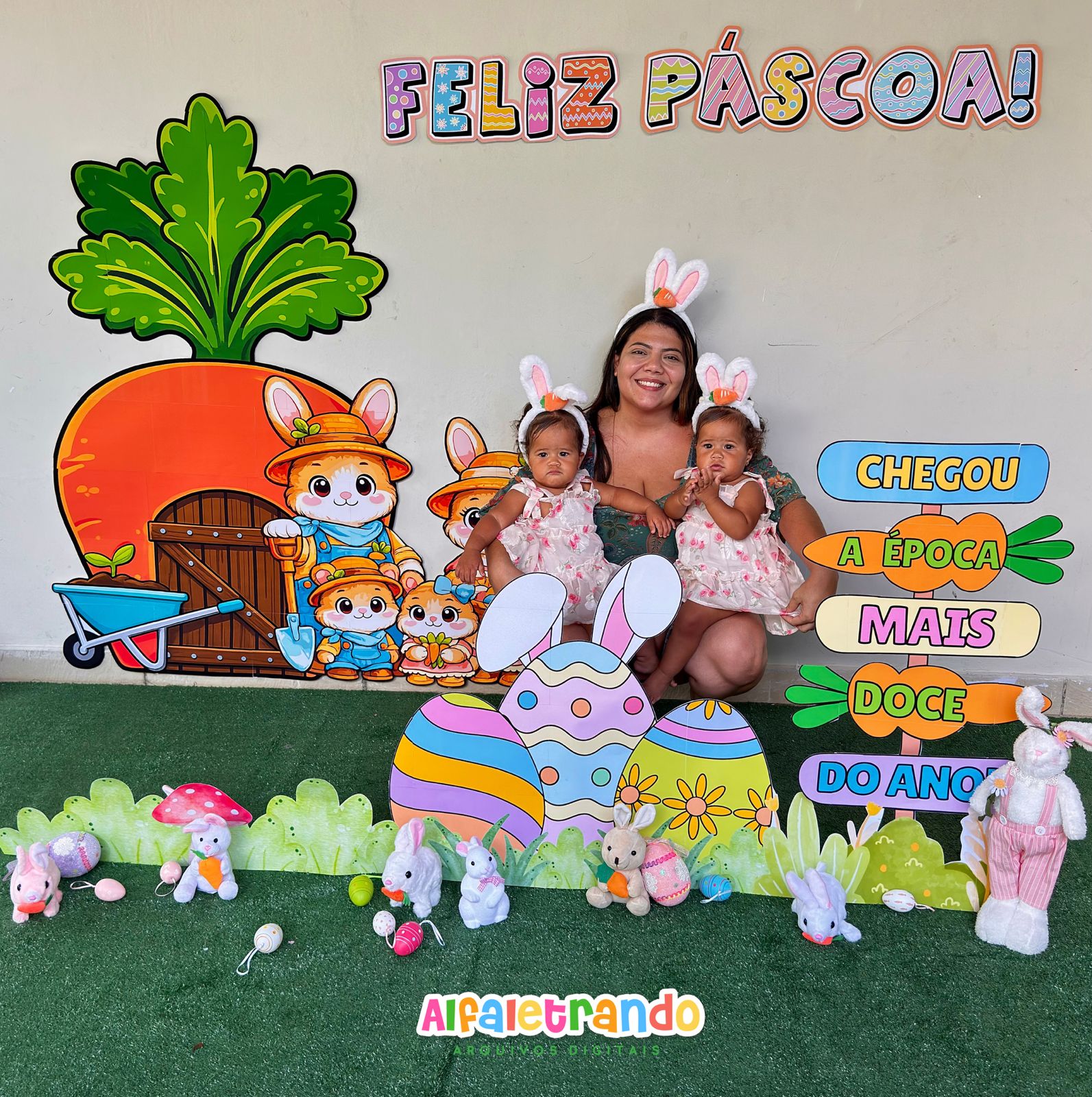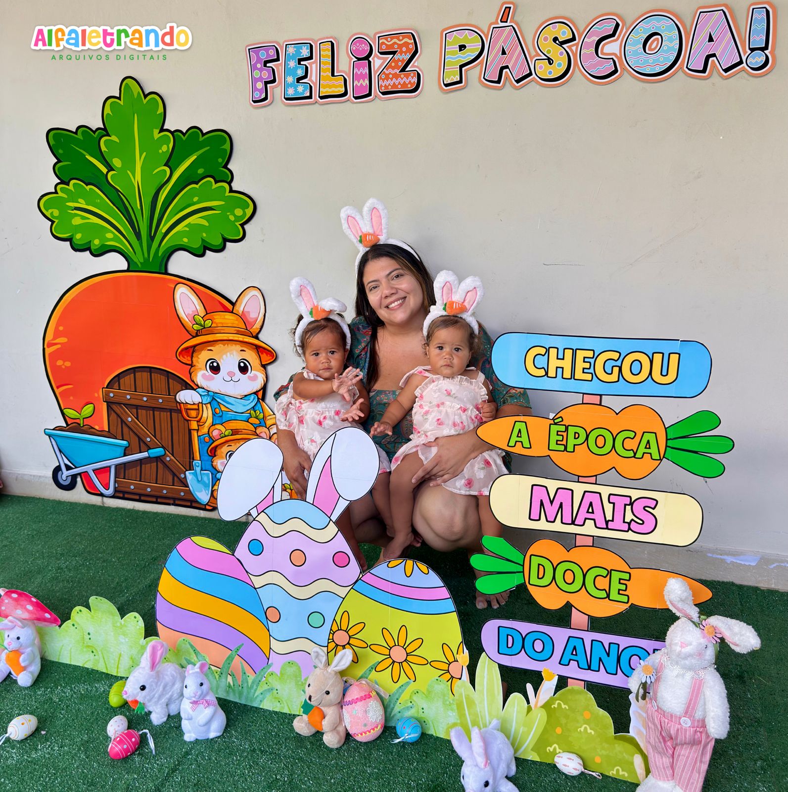 📸 Ideal para criar registros inesquecíveis das suas turminhas e das famílias em eventos na escola transformando qualquer espaço em um cenário alegre e acolhedor nesta Páscoa. 🐰🥕🥹