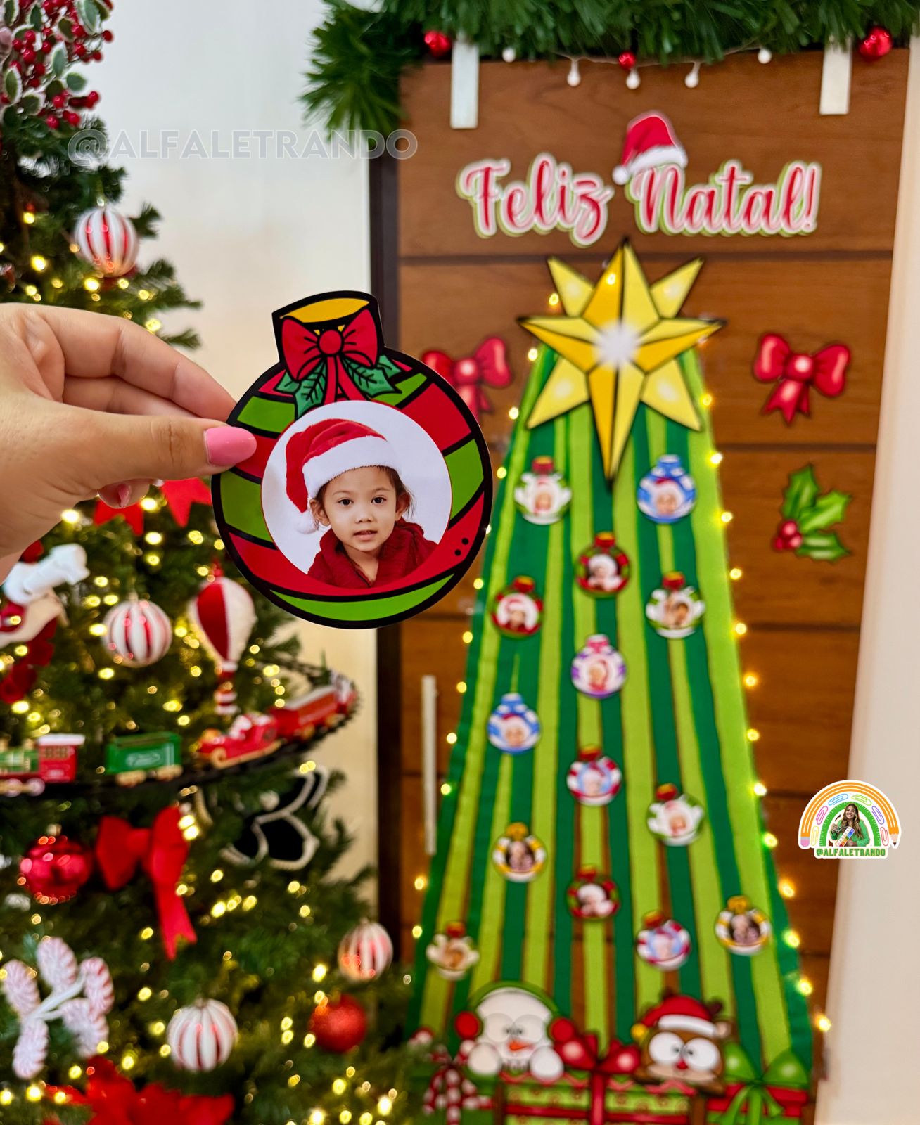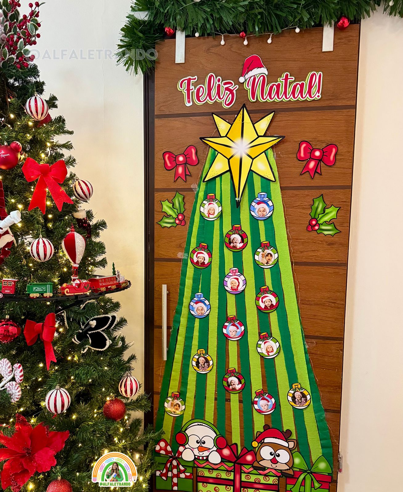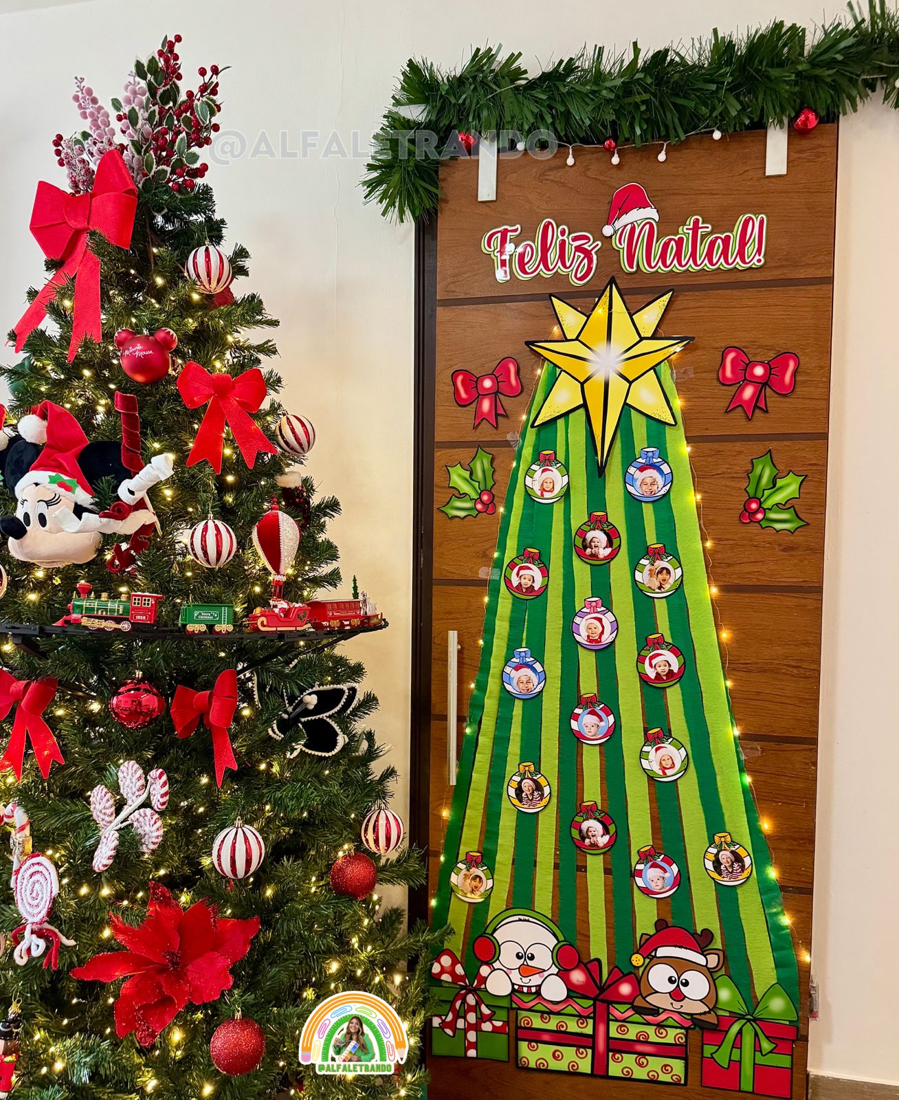 🎄 Este painel vem prontinho para você personalizar colocando as fotinhos dos seus familiares ou alunos pois ele é editável em CANVA e fica incrível tanto na porta quanto na parede (tendo dois tamanhos de título para você escolher).