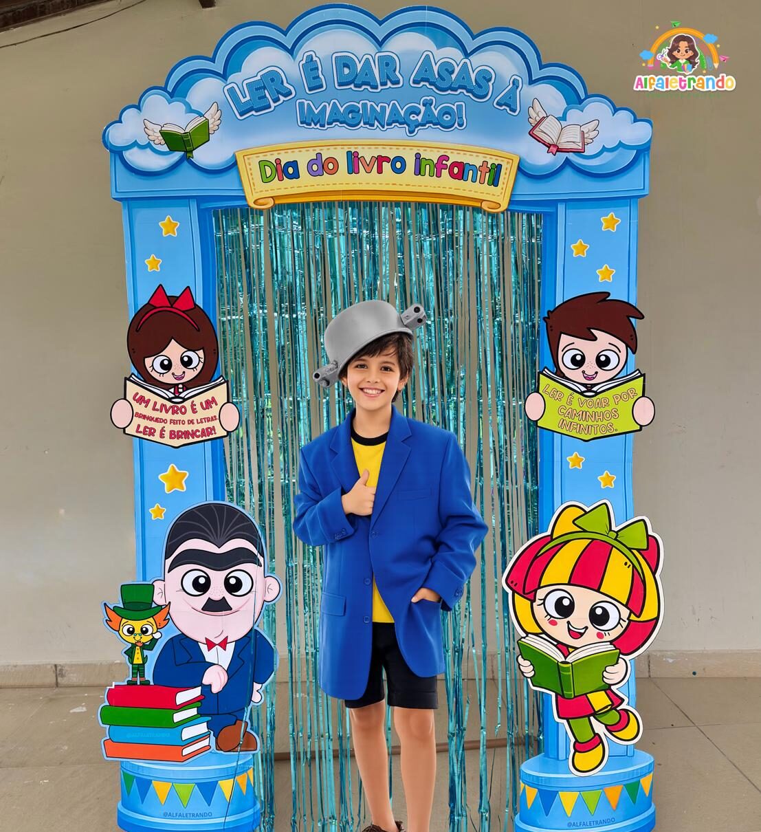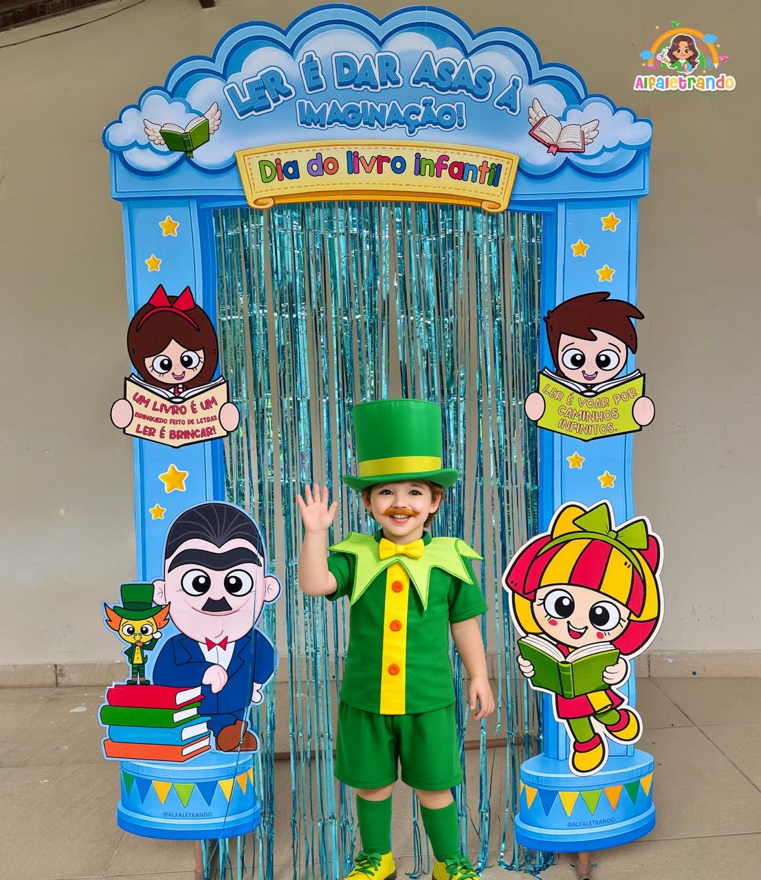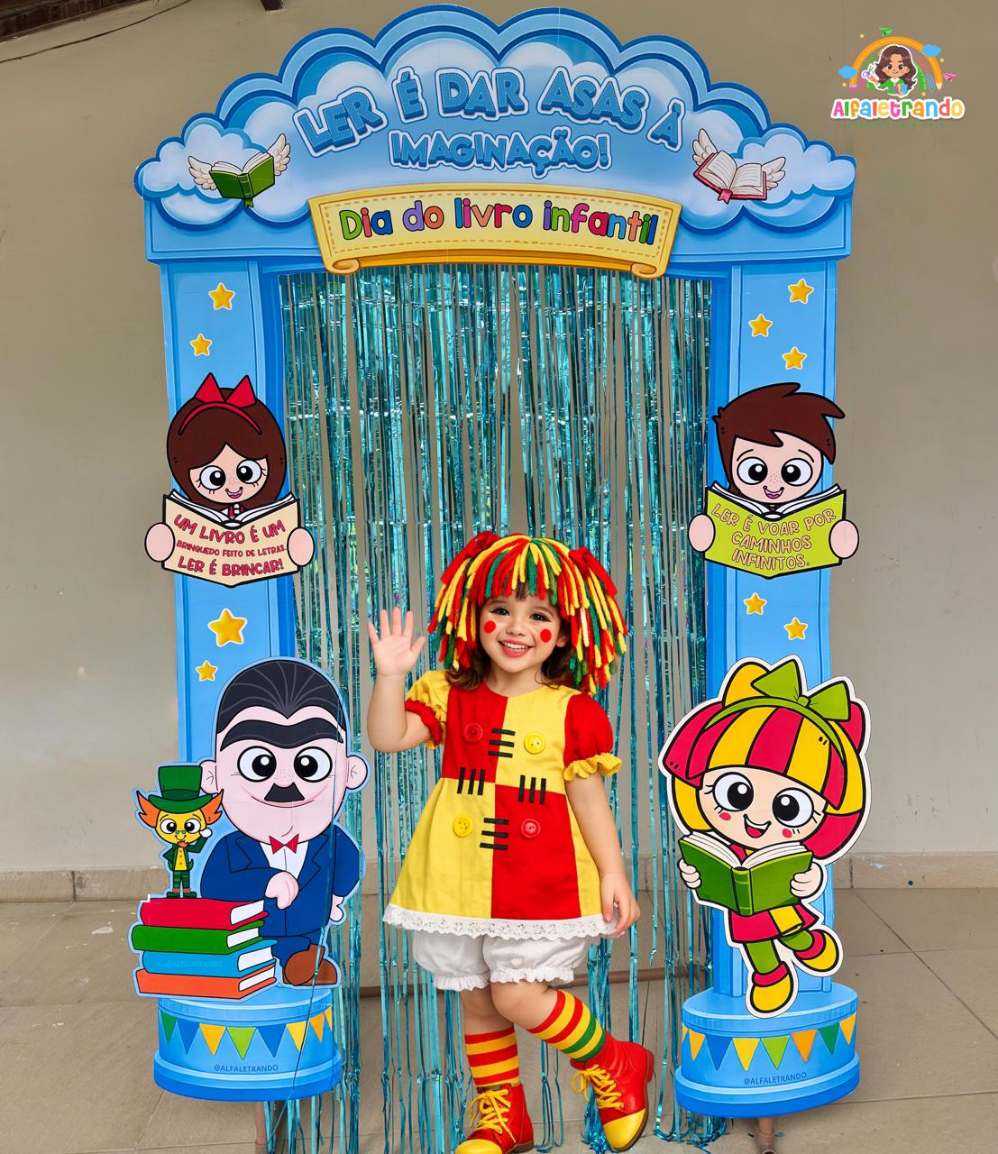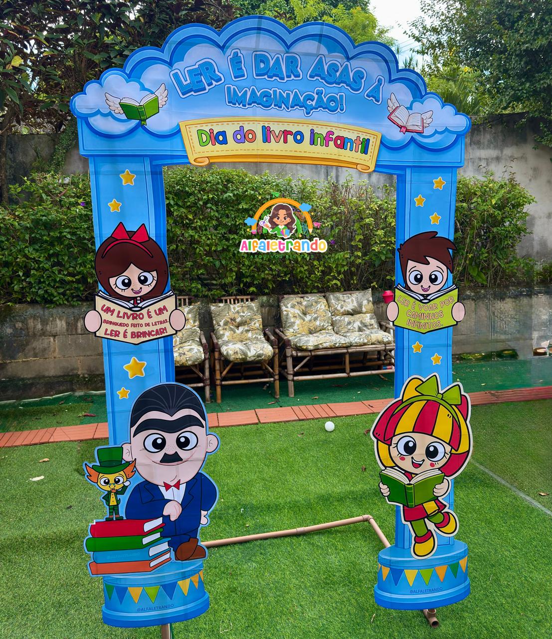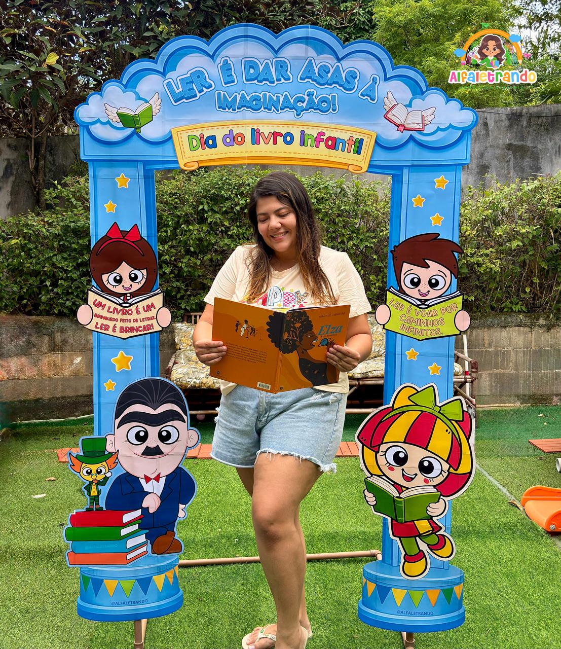 O painel possui arte exclusiva dos personagens de Monteiro Lobato com a frase tema: “Ler é dar asas à imaginação!” 📘🪽