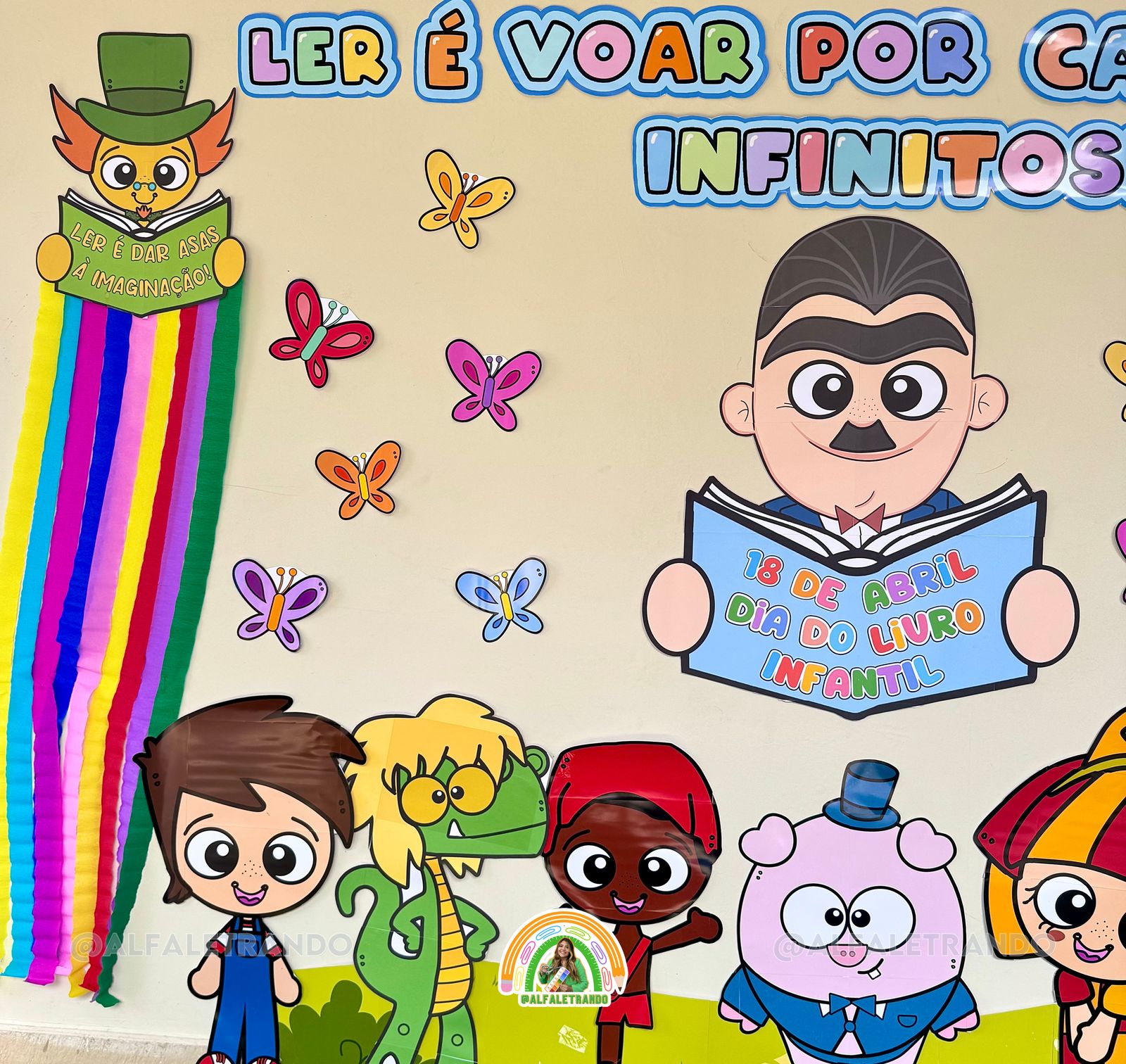 o painel possui 360 cm de largura por 250 de altura eo arquivo ven com os personagens já ampliados para facilitar a montagem do seu painel para celebrar esta data tão significativa e importante para a literatura brasileira.