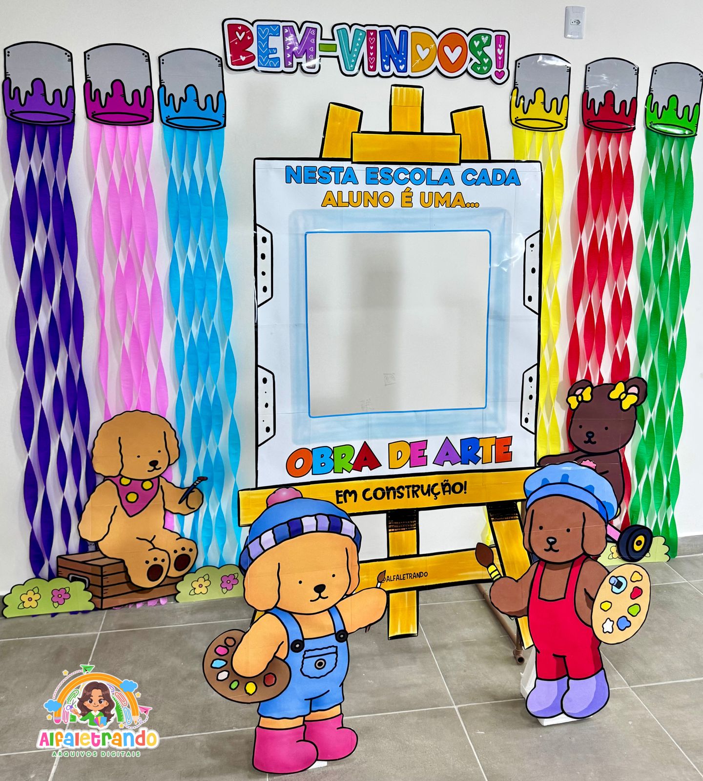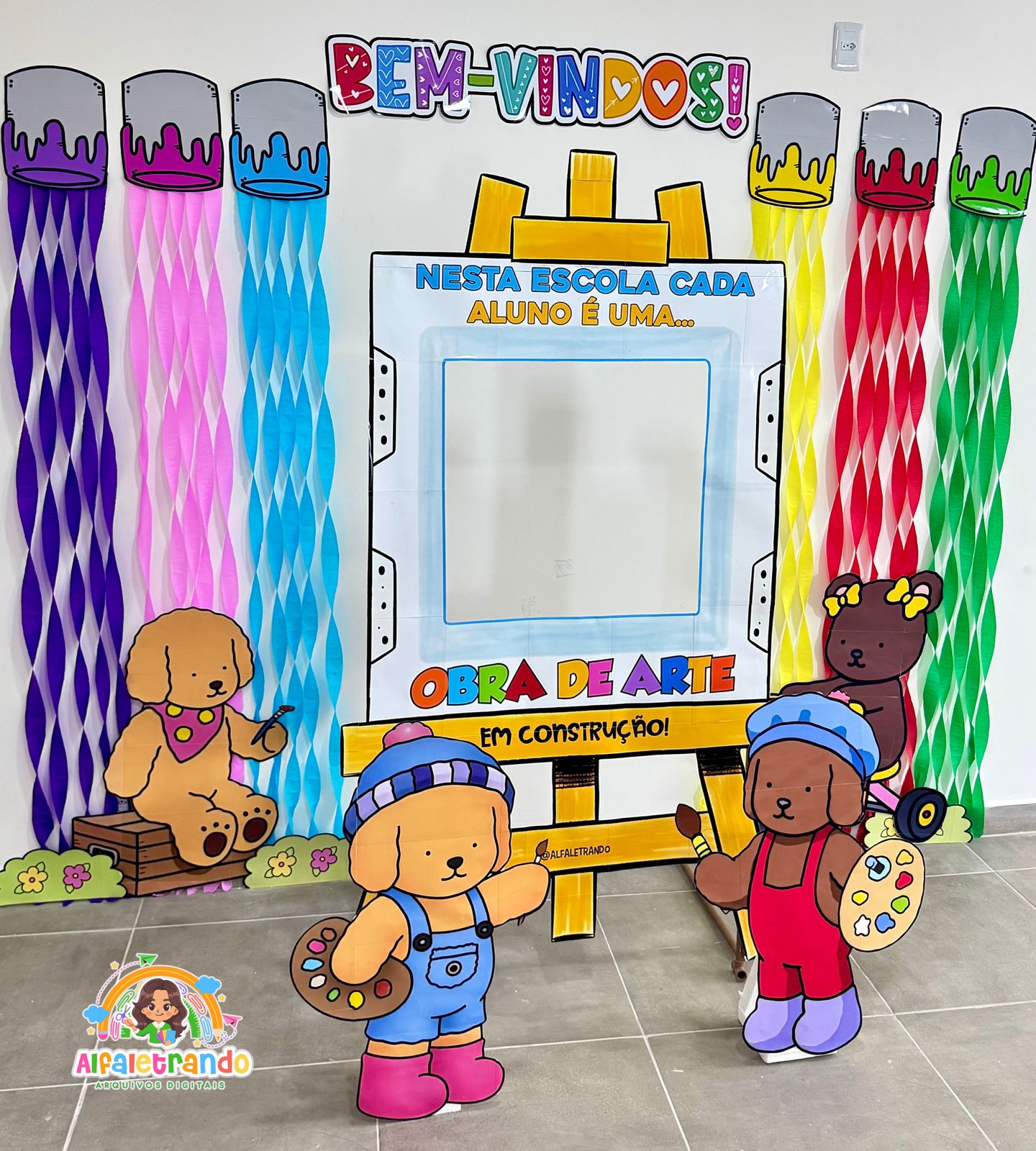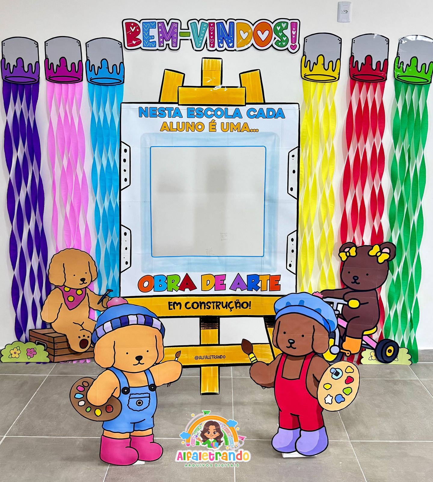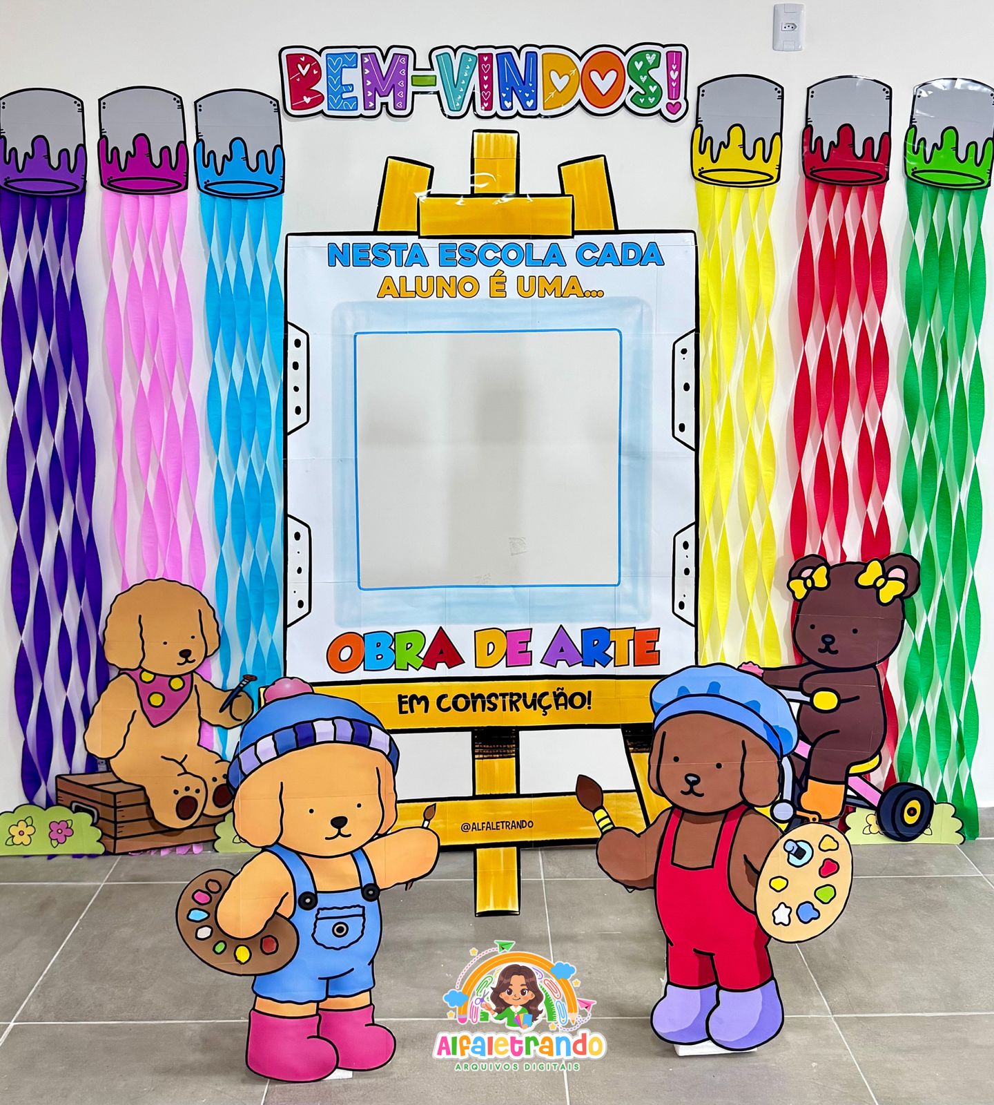Receba seus alunos com um painel lindo, colorido e perfeito para fotos! ✨