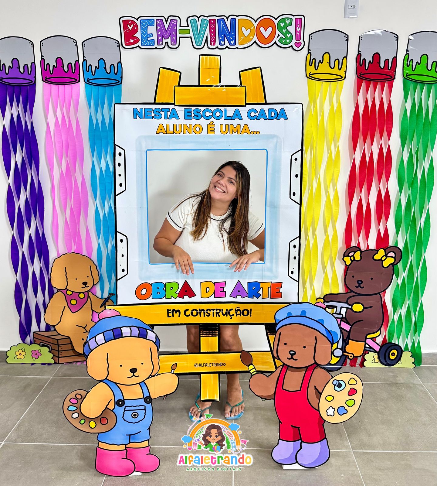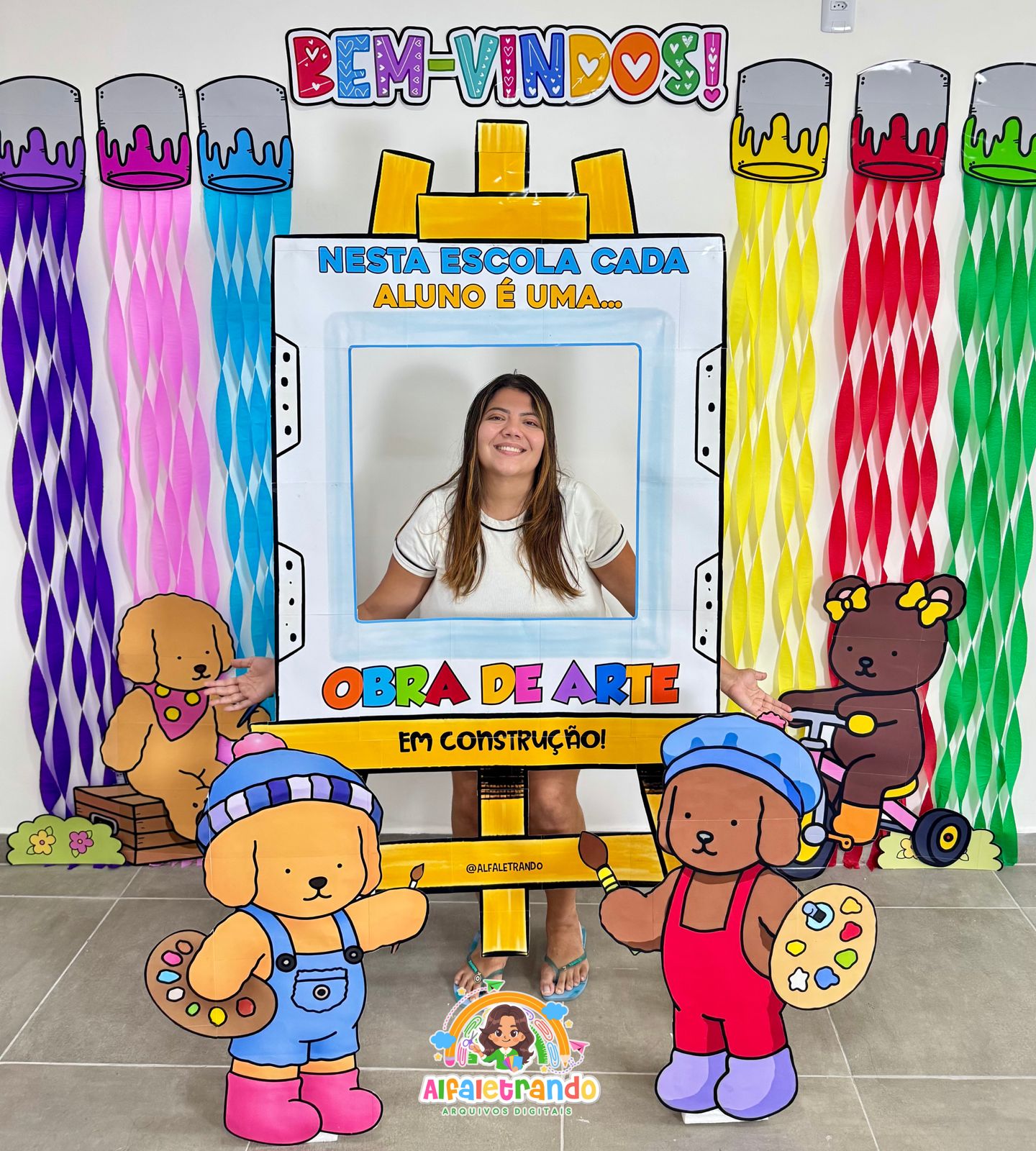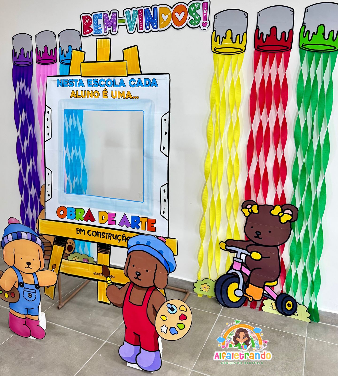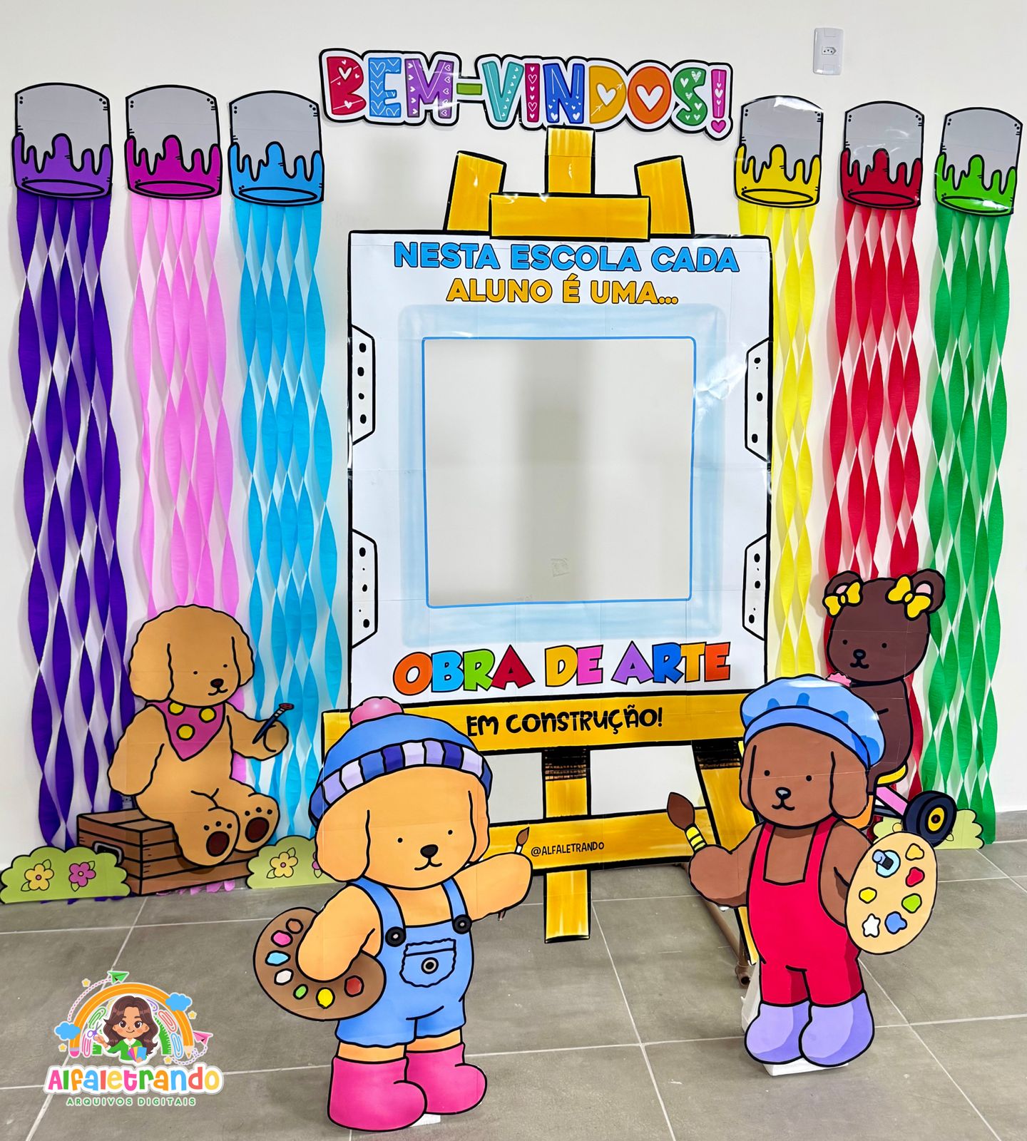 Receba seus alunos com um painel lindo, colorido e perfeito para fotos! ✨